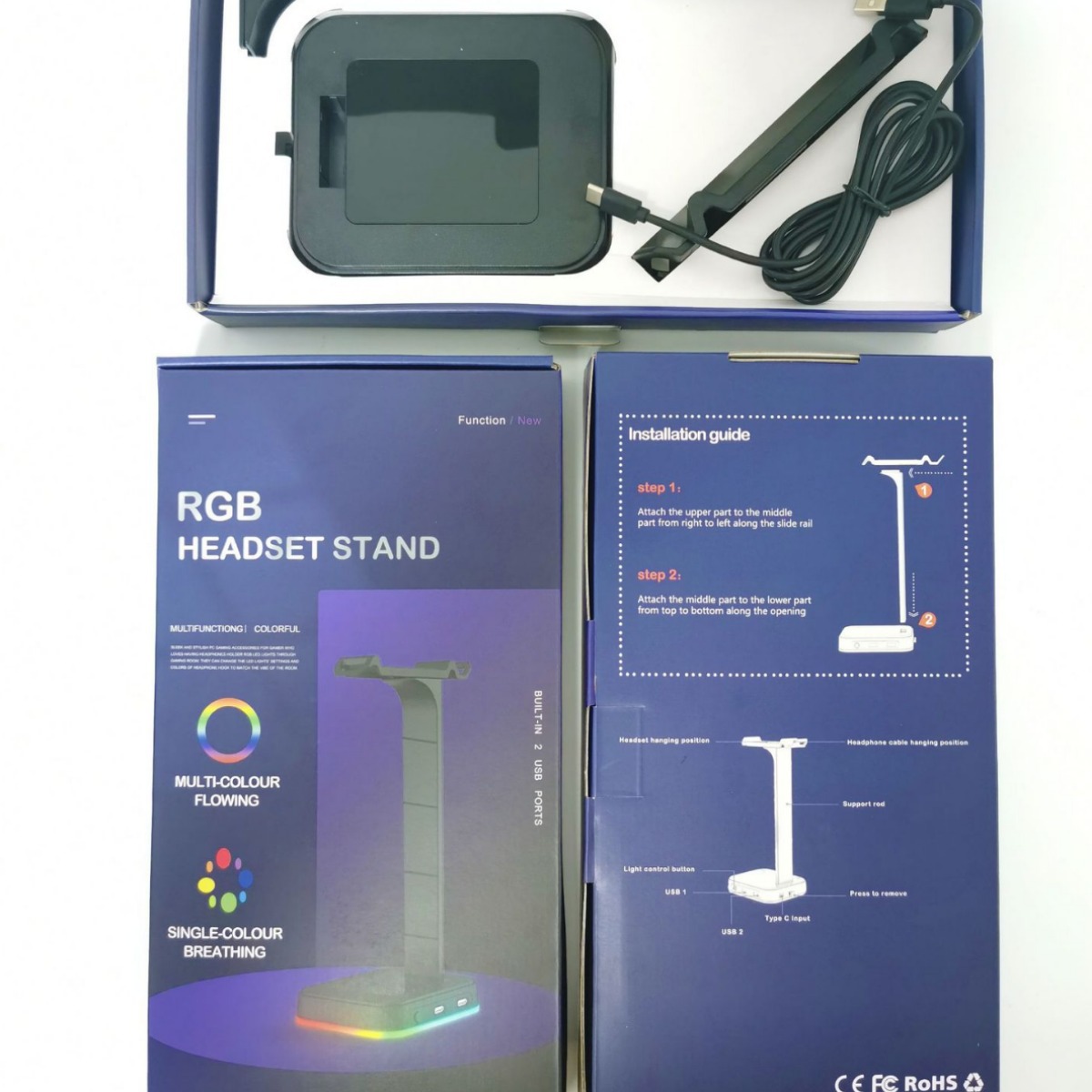 Підсвітка RGB: підставка для навушників має 7 колірних режимів освітлення, крутий візуальний ефект може створити будь-яку атмосферу. Натисніть і утримуйте сенсорну кнопку впродовж 3 секунд, щоб увімкнути/ввімкнути підсвітку.